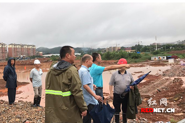 7月1日下午3时,在临时接到拆除新区临江项目工地围挡以保障安全的通知时,暴雨中,住建环保局建管处处长李卫辉、长沙市质监站驻湖南湘江新区质监分站站长陈平、长沙市安监站驻湖南湘江新区安监分站站长熊尚湘立刻赶赴现场进行项目巡查。沿着江边,从滨江片区到大王山片区,他们奔走在各个项目工地,拆围挡之后拉起警戒线,记录深坑高坡的安全性,及时在防汛防涝工作联系群中汇报。