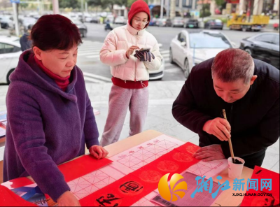 湘江新闻网2月5日讯(通讯员 王晨星)墨香启岁,福满嘉枫。2月3日下午,嘉枫社区携手金地峯范府、旭辉都会山物业服务中心,在嘉枫社区一楼前坪温情启幕“嘉枫邻里聚 挥毫迎新春”写春联活动,以笔为媒、以墨传情,为辖区居民送上满含心意的新春祝福。