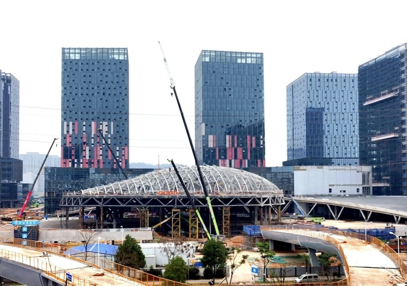 项目建设面临显著技术挑战。“云脑”主体结构造型复杂、节点多变,其核心弧形穹顶的大跨度吊装与高空合龙是施工重中之重。项目团队通过协同设计、施工、监理等多方力量,定制专项方案,采用大型履带吊分块吊装与高空原位拼装相结合工艺,并对关键节点应力与变形进行实时监测,最终确保数百吨钢结构在21.1米高空精准成型,成功攻克了异形钢结构高精度施工难题。