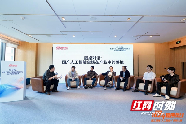 在圆桌对话环节,现场六位专家共同围绕“国产人工智能全栈在产业中的落地”展开讨论。嘉宾们从模型能力、算力支撑、数据基建、产品化路径与生态协作等多角度,探讨了如何推动AI技术从实验室走向规模化应用,并为长沙的AI产业发展提出了务实建议。
